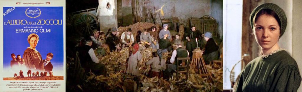 Tra l’autunno 1897 e l’estate 1898, quattro famiglie vivono in una cascina della Bassa Bergamasca. Tra i componenti di questa comunità esiste un profondo legame spirituale e culturale che li porta a vivere insieme cose belle e cose tragiche, avvenimenti ordinari e avvenimenti straordinari. Quando si tratta di versare al severo Mesagiù, il padrone della fattoria, i due terzi dei prodotti, cercano tutti di barare per guadagnare pochi chili di farina. Quando la bella Maddalena va sposa a Stefano, tutti fanno corona al matrimonio stramattutino e tutti accolgono gli stessi quando tornano da Milano con il bimbetto adottato. Insieme uccidono il maiale; separano i contendenti; ascoltano i racconti dei vecchi; ricevono il parroco, don Carlo: prendono parte alle funzioni religiose e alle sagre paesane. Tutti godono per la miracolosa ‘guarigione’ della vacca della povera vedova Runk. Menek è il bambino di sei anni che, unico della fattoria, frequenta la scuola. Un giorno torna a casa con uno zoccolo rotto. Papà Batistì lavora nascostamente per tutta la notte a intagliargliene uno nuovo. Ma si è servito di un albero tagliato abusivamente. Il padrone lo caccia e tutti gli amici osservano sgomenti e impotenti la sua partenza con la famigliola verso l’ignoto e la miseria.