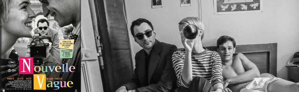 «Una volta ho detto che ogni regista che lavora da tempo dovrebbe, a un certo punto della propria carriera, realizzare un film sul processo di realizzazione di un film. È naturale voler esplorare questo argomento complesso e totalizzante al quale dedichiamo tutta la nostra passione e la nostra creatività. Ma qual è l’approccio giusto? Come trovare il tono giusto? È possibile fare meglio di “Effetto notte”? Probabilmente no. Nel corso degli anni, nella mia testa tornavo sempre al momento in cui ho realizzato il mio primo film importante, a quella gioia assoluta di poter finalmente condensare anni di idee e ossessioni cinematografiche in un film. È un’esperienza che si può vivere una volta sola, ovviamente. Nessuno è mai veramente preparato alle battaglie fisiche e mentali che ne derivano: lo scontro tra una fiducia enorme in sé e una profonda insicurezza dovuta all’inesperienza, la passione sconfinata che viene messa alla prova ogni giorno dall’instabilità di un lavoro che coinvolge così tante persone, ognuna con la propria personalità e le proprie esigenze. Quando Jean-Luc Godard è scomparso due anni fa, ho pensato: “È ora di realizzare questo film, questo ritratto di quel momento così unico: la nascita della Nouvelle Vague”. Una lettera d’amore rivolta a chi ti ha fatto venire voglia di fare film, a chi ti ha fatto credere di poter fare film, a chi ti ha convinto che dovevi fare film… e, tra l’altro, cosa stavi aspettando a farlo? Non si trattava di rifare “Fino all’ultimo respiro”, ma di guardarlo da un’altra prospettiva. Volevo tuffarmi nel 1959 con la mia macchina da presa e rivivere quell’epoca, quelle persone, quell’atmosfera. Volevo frequentare la gente della Nouvelle Vague. Ho detto a tutti gli attori: “Non state girando un film in costume. State vivendo quel momento preciso. Godard è un critico famoso, ma è alla sua prima regia. Vi state divertendo a girare con lui, ma vi chiedete anche se questo film arriverà mai sugli schermi”. Non dimenticate che il cinema stesso è ottimista. E, come disse François Truffaut in quel periodo “Il cinema del futuro sarà un atto d’amore”. Quindi ora… diamoci dentro!”». (Richard Linklater)