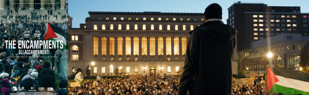 The encampments racconta l’ondata internazionale di attivismo studentesco scatenato dall’accampamento di solidarietà con Gaza organizzato nella Columbia University di New York. Attraverso filmati esclusivi e interviste intime, il documentario offre uno sguardo su uno dei movimenti studenteschi più significativi degli ultimi anni. Il film ha il merito di fare luce sul perché degli sforzi esagerati per sopprimere l’attivismo studentesco. Anche un’analisi superficiale rivela che le università investono in società coinvolte nel conflitto, lo slogan scelto dal movimento non a caso è «Disclose, divest, we will not stop, we will not rest» («Denuncia, disinvesti, non ci fermeremo, non ci calmeremo»). L’accampamento della Columbia University è iniziato nell’aprile 2024, quando circa cinquanta studenti hanno piantato le tende nel campus universitario, dando inizio a un’occupazione che si sarebbe trasformata in un movimento di protesta nazionale. Il documentario segue la drammatica escalation, dal divieto imposto dall’amministrazione della Columbia alle organizzazioni studentesche pro Palestina, agli arresti di massa, dopo la violazione della norma, rispettata da 50 anni, che vietava l’ingresso della Polizia nel campus. Mentre gli studenti affrontavano la repressione istituzionale, il movimento si è diffuso nelle università di tutto il paese e nel mondo.